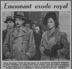 Largimi i familjes mbretërore shqiptare nga atdheu, si arsye e pushtimit fashist, ka ngjallur një interes të veçantë në shtypin francez të kohës. Gazetat Paris-soir (maj, 1939) dhe L’Intransigeant (korrik, 1939) kanë botuar fotografitë e rralla të Mbretit Zog dhe Mbretëreshës Geraldinë gjatë mbërritjes dhe largimit të tyre nga Stambolli.