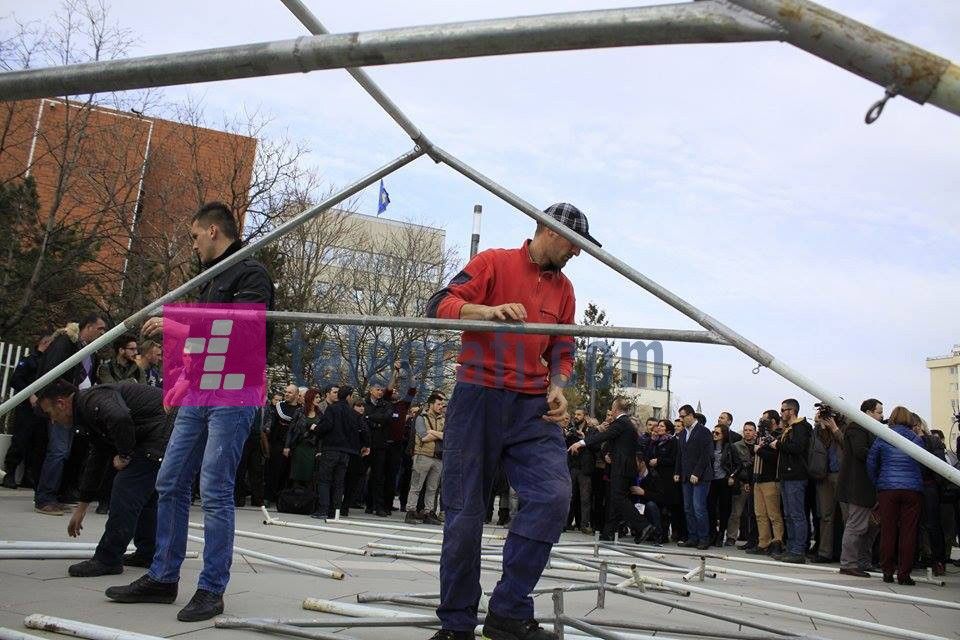 Aktivistët e partive opozitare kanë filluar që të vendosin tendat në sheshin “Skënderbeu” në qendër të Prishtinës.