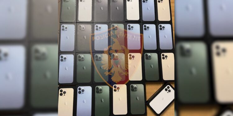 Në kuadër të operacionit policor të koduar “Phones”, ka rënë një pranga një 55-vjeçar me iniciale K.Q. pasi gjatë kontrollit në subjektin që ai administronte në Rrugën e Durrësit, Policia i gjeti dhe i sekuestroi në cilësinë e provës materiale 27 aparate celulare Iphone 13 Pro Max që dyshohet se janë futur kontrabandë në vend.