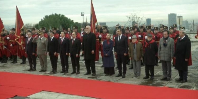 Të pranishëm janë presidenti Bajram Begaj, kryeministri Edi Rama, kryetari i Kuvendit, Niko Peleshi, ministri i Mbrojtjes, Pirro Vëngu, kryetarja e komanduar e bashkisë së Tiranës, Anuela Ristani.