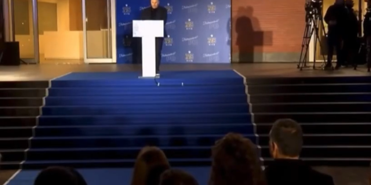 Ndërsa një nga folësit po mbante fjalën në 35-vjetorin e themelimit të PD, në sfond janë dëgjuar ulërima edhe ofendime.