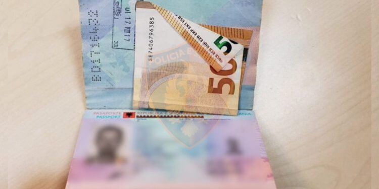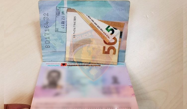 I riu kishte futur në pasaportë një kartmonedhë 50 euroshe për te justifikuar mangësinë që kishte në dokumentat e tij.