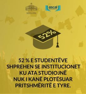 Sipas sondazhit të publikuar nga ministrja Shahini, 52% e studentëve shprehen se institucionet ku studiojnë nuk i plotësojnë pritshmëritë e tyre.