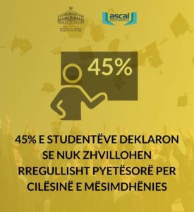 Ministrja Shahini shkroi në Facebook se në sondazh u mblodhën opinionet e studentëve mbi 6 çështje kryesore: organizimi i institucionit, burimet e institucionit, kurrikulat dhe përmbajtja, mësimdhënia dhe mësimnxënia, aktiviteti kërkimor dhe mbështetja ndaj studentëve. /l.m