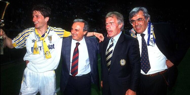 Në vitin 1994, Parma afroi dy lojtarë të rëndësishëm si Asprilla dhe Zola, duke fituar Superkupën e UEFA-s përballë Milanit. Një vit verdheblutë fituan Kupën Uefa kundër Juventusit. Sezonin e ardhshëm Carlo Ancelotti arriti vendin e dytë në kampionat duke sjellur dhe kualifikimin e parë në Champions League falë Buffon, Cannavaro dhe Thuram. Trofe edhe me Malesanin si trajner: