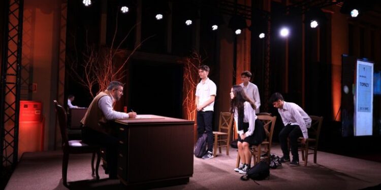Për të pranishmit u vunë në skenë disa copëza të komedisë “Topazi” të sjella për publikun në skenën e ArTurbinës me aktorë të trupës së sotme të Teatrit Kombëtar, pikërisht në 80-vjetorin e themelimit.