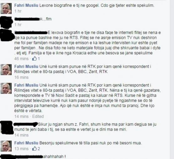 Në faqen e tij në Facebook Musliu thotë se ai njeh nënën e Vuciç, pasi kanë qenë kolegë, gazetarë, por mohon të ketë patur lidhje me të.