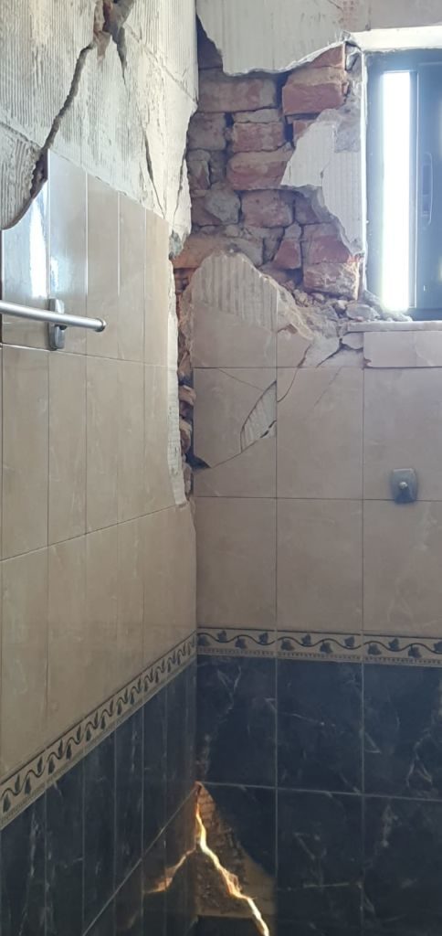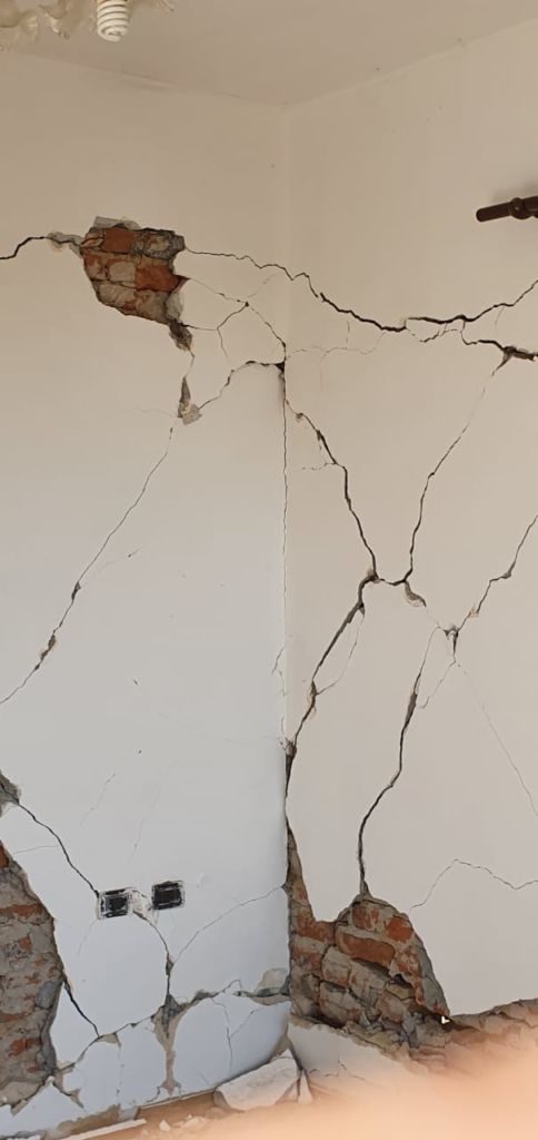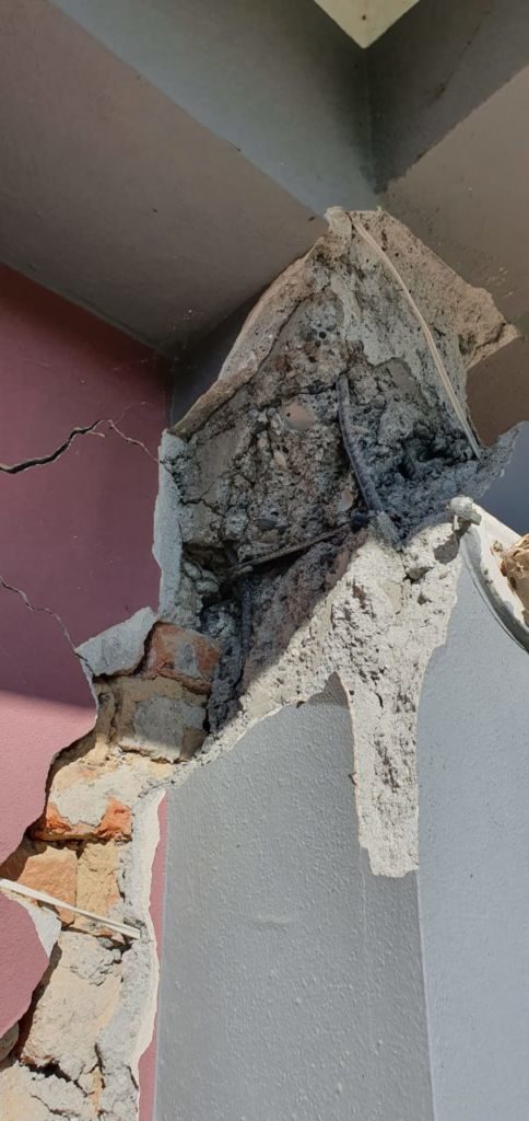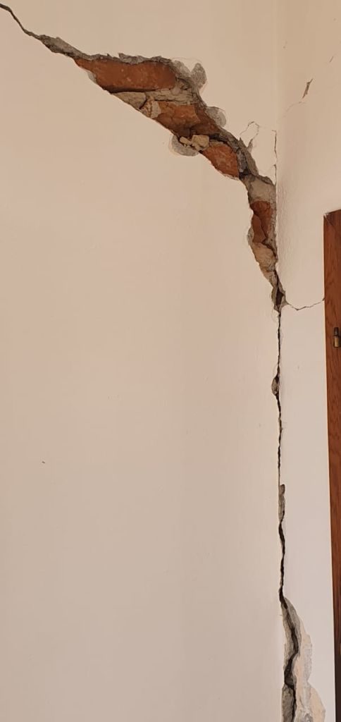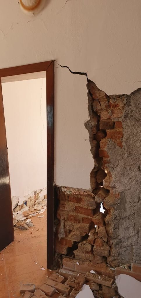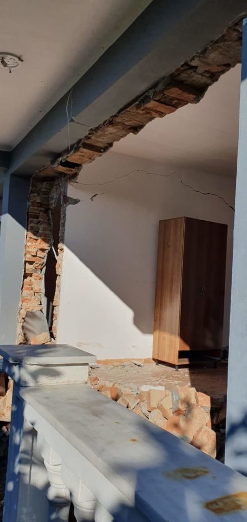 Siç mund të shihet edhe nga fotogratë, shtëpia e këtij të fundit ka pësuar çarje të mureve dhe kolonave.