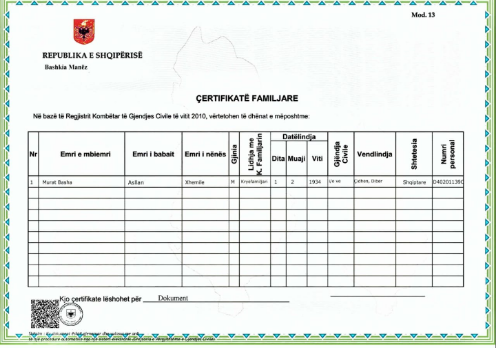 1. Certifikatat familjare, të cilat qartazi tregojnë sa persona e familje ishim në banesë,