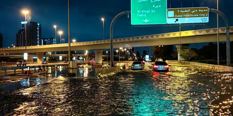 Shiu i një viti ka shkaktuar përmbytje të mëdha në Dubai, ndërsa rrugët u kthyen në lumenj dhe uji i vrullshëm përmbyti shtëpi dhe biznese.