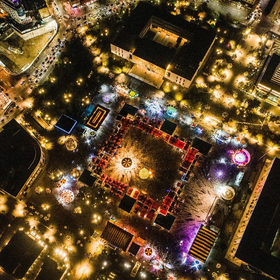 “Pamje ajrore e Sheshit Skënderbej në Tiranë, e ndezur me dekorimet e Krishtlindjes dhe e rrethuar nga një treg i hapur i Krishtlindjeve”, thuhet në tekstin e AFP e cila ka miliona ndjekës nga e gjithë bota.