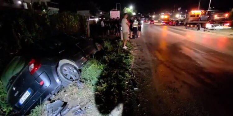 Një automjet tip “Renault”, pasi është përplasur me një mjet tip “Golf”, ka dalë nga rruga, duke përfunduar në kanal.