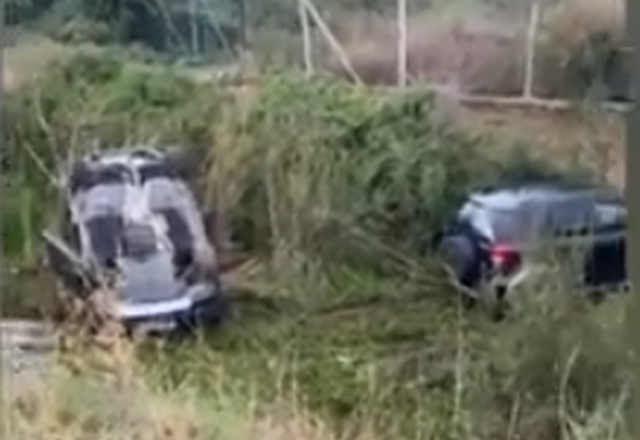 Dy automjete janë përplasur me njëra tjetrën dhe kanë përfunduar në kanal.
