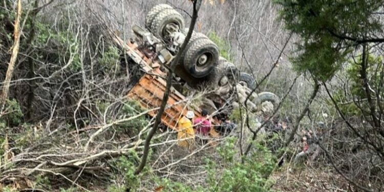Report Tv ka siguruar foton e kamionit që ka rënë në humnerë sot në aksin rrugor Gramsh-Poçan. Kamioni ka dalë nga rruga dhe shihet i kthyer përmbys në humnerë.