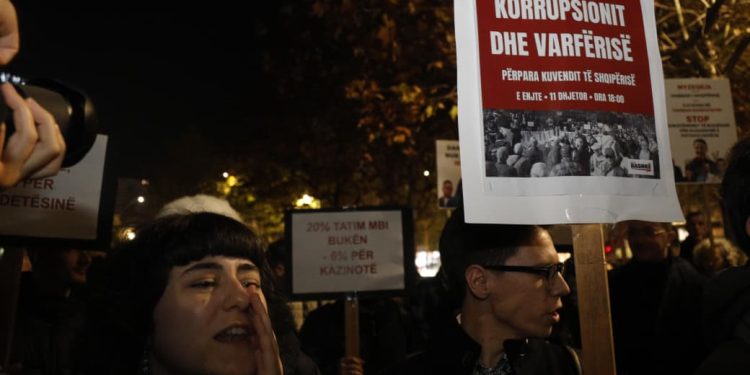 “Populli kundër korrupsionit dhe varfërisë”, është një tjetër pankartë ku ftohen qytetarët t’i bashkohen protestës së lëvizjes “Bashkë” para Kuvendit.
