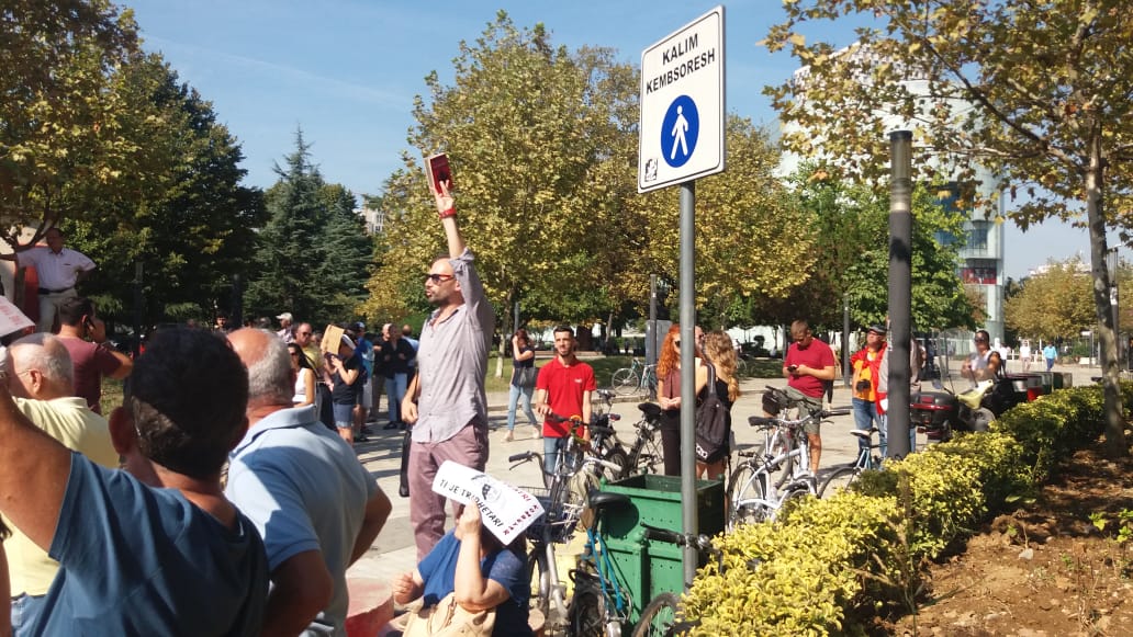 Robert Budina mbajti një fjalë përpara protestuesve. Ai i bëri thirrje qytetarë që të vijojnë qëndresën.