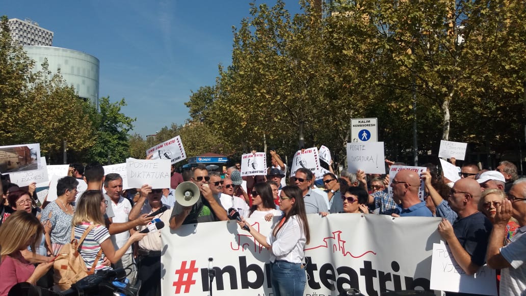 Aleanca për Mbrojtjen e Teatrit, qytetarë dhe aktivistë të ndryshëm janë mbledhur në një protestë sot para Kuvendit, ku kërkojnë rrëzimin e ligjit për Teatrin.