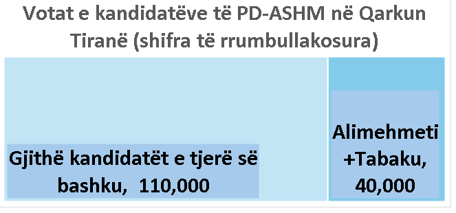Duke i ndërthurur shifrat e mësipërme, mund të arrihet në përfundimin se Alimehmeti dhe Tabaku kanë një përkrahje organike si në elektoratin, ashtu edhe në antarësinë e PD-së së Tiranës, të pandihmuar nga shiringa lokale apo nga jashtë sinorit demokrat. Se çfarë do të bëjnë këta të dy politikisht me këtë përkrahje të madhe mbetet të shihet…