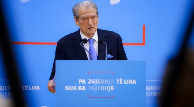Kreu i PD Sali Berisha ka folur gjatë konferencës së sotme për mediat për zgjedhjet e parakohshme që pritet të mbahen në Tiranë.