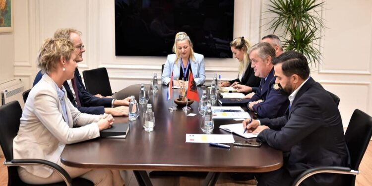 Ambasadori Reinout Vos u prit në takim kortezie nga Drejtori i Përgjithshëm i Policisë së Shtetit Drejtues Madhor Muhamet Rrumbullaku.
