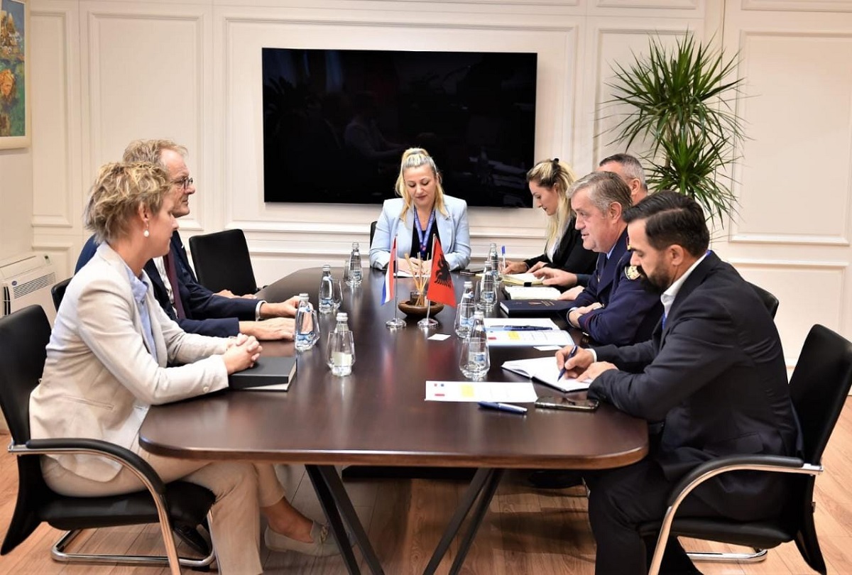 Ambasadori Reinout Vos u prit në takim kortezie nga Drejtori i Përgjithshëm i Policisë së Shtetit Drejtues Madhor Muhamet Rrumbullaku.