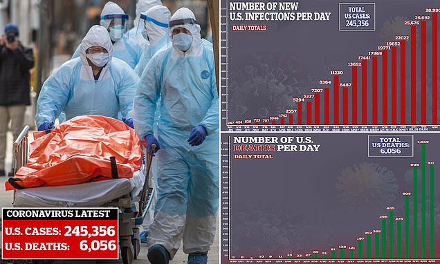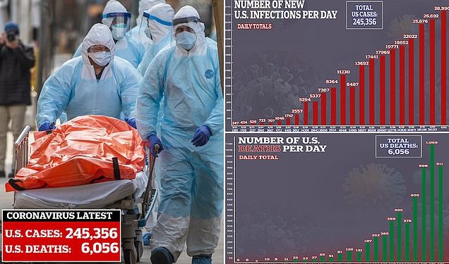 Në Shtetet e Bashkuara, numri i të konfirmuarve me koronavirus ka arritur në mëse 245 mijë dhe 6056 të vdekur. Në qytetin e Nju Jorkut janë regjistruar mëse 1,560 të vdekur që nga fillimi i pandemisë. Pandemia ka infektuar më shumë se një milion njerëz në të gjithë botën.
