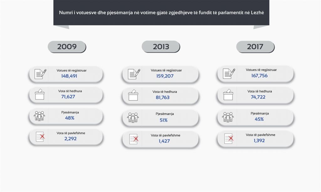 Rezultati final në Lezhë tregon se për herë të parë, Partia Socialiste arriti të marrë tre mandate nga dy që pati marrë në zgjedhjet e kaluara, ndërsa Partia Demokratike ra në tre mandate nga katër që kishte më parë. LSI arriti të ruajë një mandat, të cilin e pati fituar fillimisht më 2013.