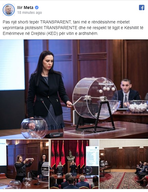 “Pas një shorti tepër TRANSPARENT, tani më e rëndësishme mbetet veprimtaria plotësisht TRANSPARENTE dhe në respekt të ligjit e Këshillit të Emërimeve në Drejtësi (KED) për vitin e ardhshëm.” shkruan Meta në postimin e tij. /e.s/