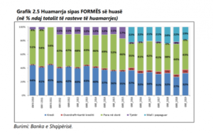 Banka e Shqipërisë vlerëson se në familjet huamarrëse, peshë të konsiderueshme vijon të ketë zëri ‘mall i papaguar’ (19% e rasteve të huamarrjes), por në rënie graduale gjatë tre periudhave të fundit.