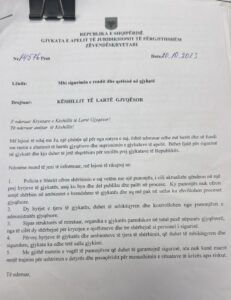 Përpos denoncimit, Gjykata e Apelit i dërgoi edhe një letër KLGJ-së ku shprehte shqetësimin duke i kërkuar marrjen e masave shtesë nëpër gjykata dhe zbatimin e VKM-së së datës 2010.