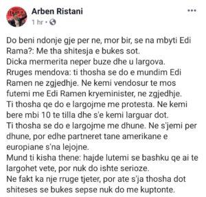 Por gjithsesi duket se një përgjigje e ka dhënë në rrjetin social, të cilin s’dihet nëse do e lexojë dot autorja e pyetjes. Ja çfarë thotë Ristani në përgjigjen e tij: