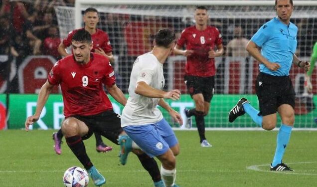 Por në minutën e 45-të akordohet një penallti për kombëtaren tonë, ku Balli rrëzohet nga kundërshtari brenda zonës.
