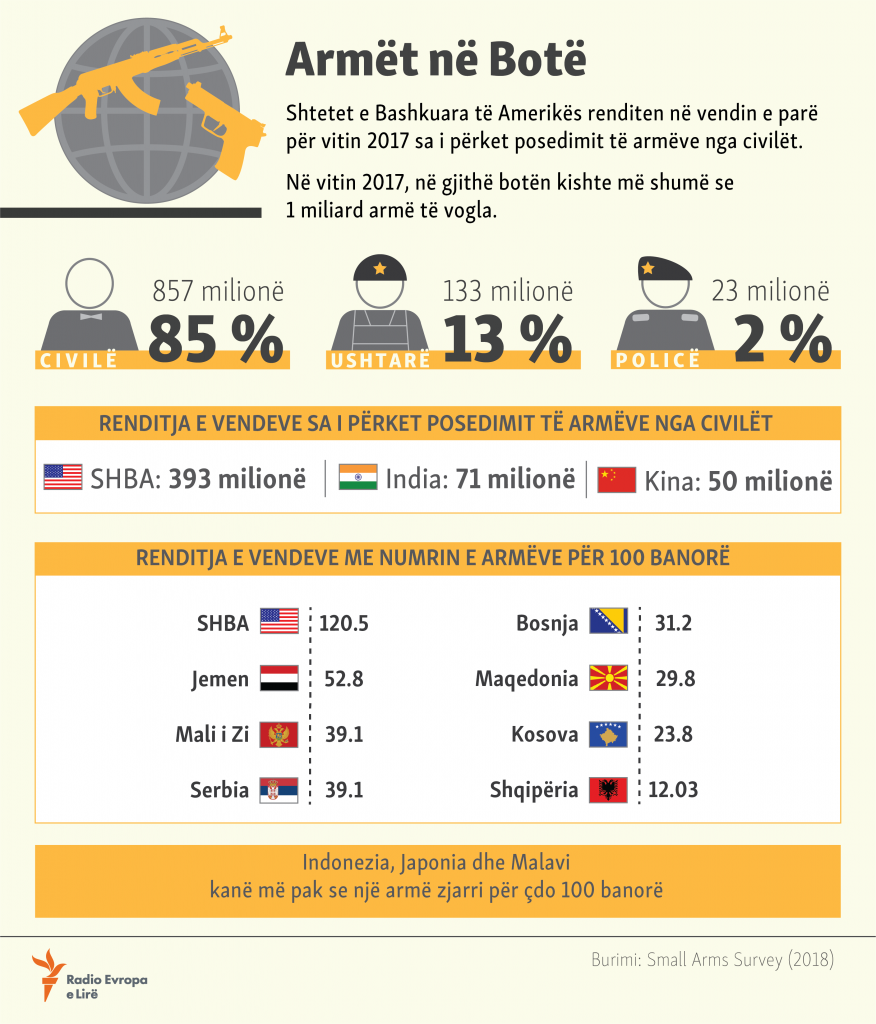 Sipas organizatës “Small Arms Survey”, numri i zotërimit të armëve të vogla nga ana e qytetarëve në botë është në rritje.