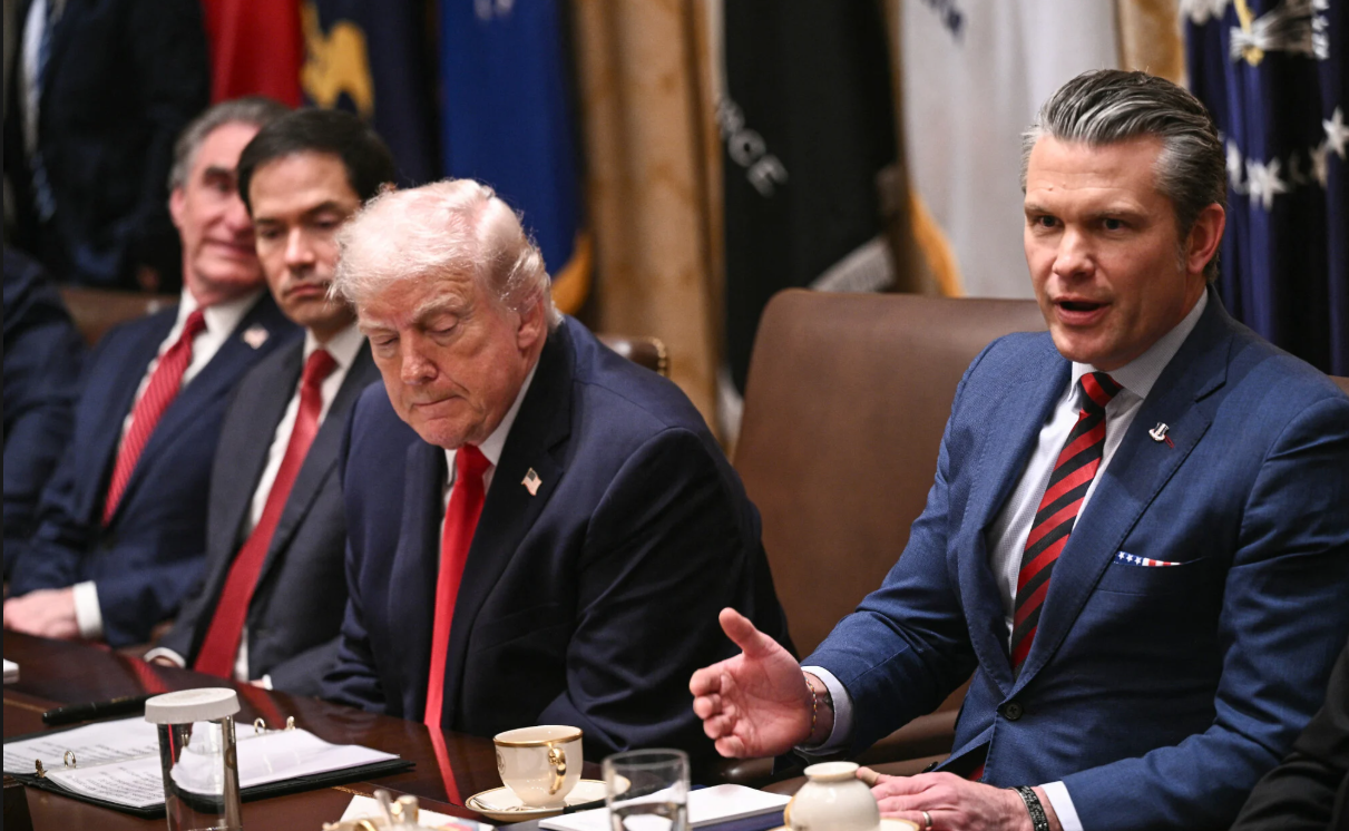 Gjatë një mbledhjeje të kabinetit, ku Trump i kërkoi Hegsethit të komentonte situatën – me një forcë të madhe ushtarake amerikane të grumbulluar në rajon – ai tha se “ata nuk duhet të rrisin kapacitetet bërthamore. Ne do të jemi të gatshëm të ofrojmë çfarëdo që ky president pret nga Departamenti i Luftës (War Department),” duke iu referuar emërtimit jozyrtar që administrata Trump i ka vënë Departamentit të Mbrojtjes.