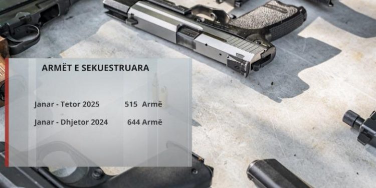 Në 10 muajt e parë të këtij viti, policia mundi të gjejë dhe sekuestrojë mbi 515 armë, nga pistoletat deri tek kallashnikovët e më gjerë. Një pjesë shumë e madhe e tyre janë armë të kapura gjatë kontrolleve rutinë në rrugë apo në makinë. Pra, poseduesi i tyre i mban me vete, me mendësinë “të jetë aty se ndoshta duhet”. Armët kapen nga blutë përgjithësisht të fshehura në makina, por ka raste edhe në brez, me fishekë në fole dhe gati për qitje. Të dhënat e Policisë së Shtetit për vitin 2024, flasin për total prej 644 armësh të sekuestruara, shifër e cila deri në fund të vitit 2025 ka tendencë të barazohet ose tejkalohet.