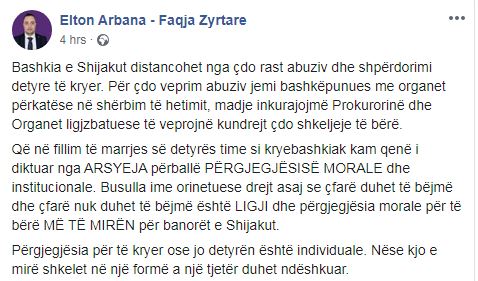 “Bashkia e Shijakut distancohet nga çdo rast abuziv dhe shpërdorimi detyre të kryer. Për çdo veprim abuziv jemi bashkëpunues me organet përkatëse në shërbim të hetimit, madje inkurajojmë Prokurorinë dhe Organet ligjzbatuese të veprojnë kundrejt çdo shkeljeje të bërë.