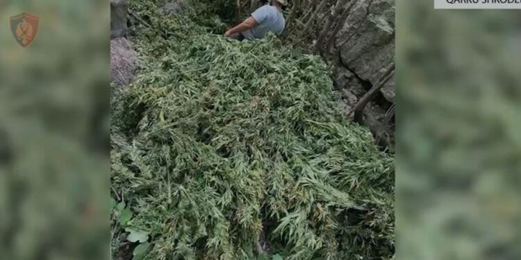 Policia e Shkodrës, ka zbuluar dhe asgjësuar 16 755 bimë narkotike dhe ka sekuestruar 320 kg degë kanabisi me boçe në proces tharjeje.