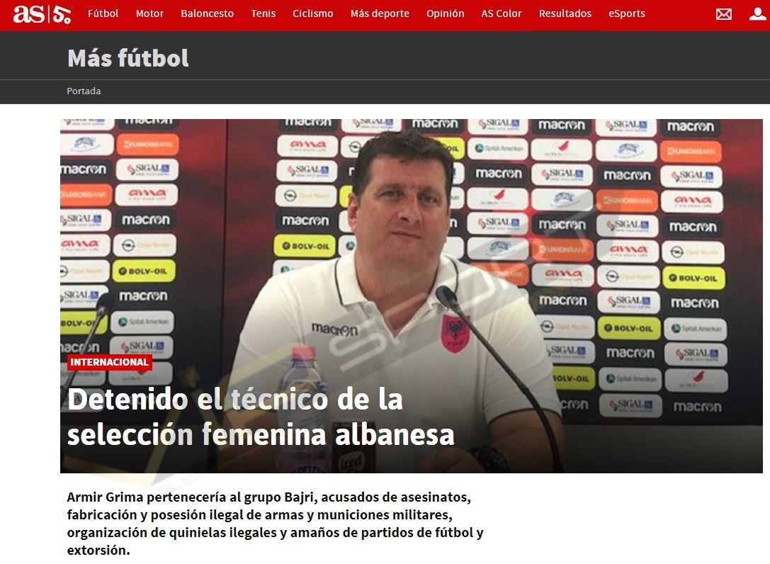 Arrestimi i Armir Grimajt, trajnerit të përfaqësueses shqiptare të futbollit të femrave ka bërë shumë bujë jashtë Shqipërisë dhe ngjarja në fjalë është pasqyruar edhe në mediat e njohura ndërkombëtare.