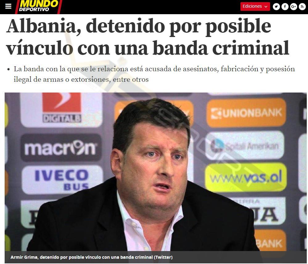 Sa i përket “Mundo Deportivo”, ajo shpjegon gjithashtu rrethanat e arrestimit të Grimës dhe dyshimet se është pjesë e “Grupit Bajri” në një operacion policor që ishte zhvilluar në Shqipëri, Holandë e Belgjikë dhe hetimet kishin zgjatur disa muaj.