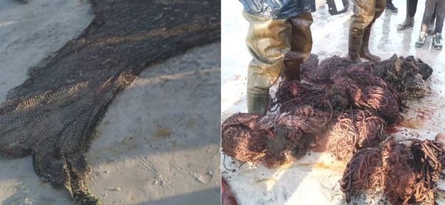 Në mesin e mbeturinave që u gjetën në barkun e krijesës së gjorë kishte rrjeta peshkimi, litarë, rripa, çanta dhe qese plastike.