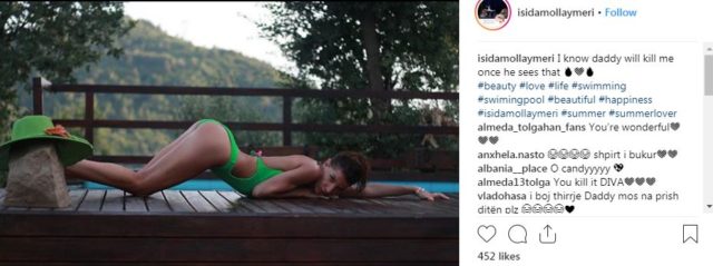 Në foton e fundit Isida shfaqet duke pozuar e shtrirë përmbys teksa shkruan se babi do ta vr asë kur ta shohë.