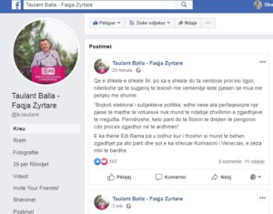 Balla, përmes një reagimi në “Facebook” thotë se meta e shkeli Kushtetutën dhe se Komisioni i Venecias e tha këtë e zeza në të bardhë.