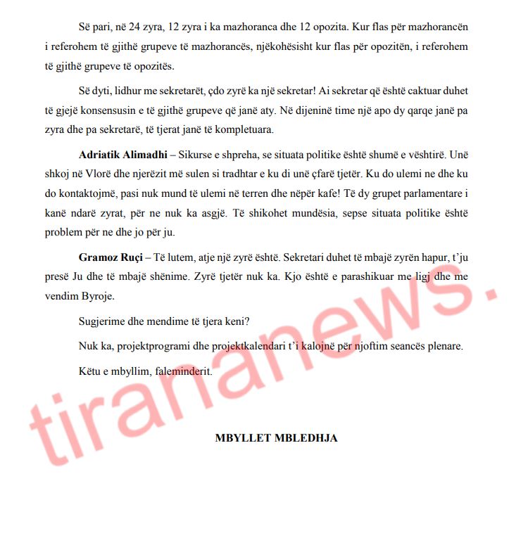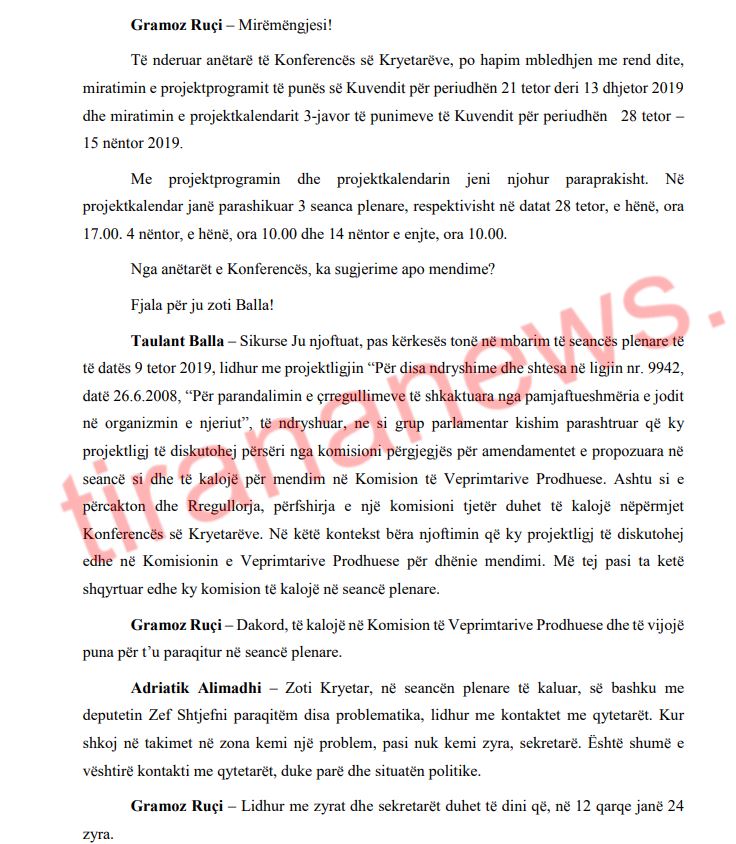 Shqetësimi i tyre është ngritur në mbledhjen e fundit të Konferencës së Kryetarëve. Deputeti i Ballit Kombëtar, Adriatik Alimadhi në mbledhjen e datës 14 tetor, e zhvilluar me dyer të mbyllura, duke iu drejtuar Ruçit u shpreh: