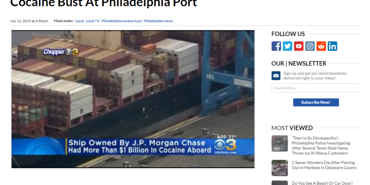 Interesant është fakti se droga u kap në një anije mallrash në një port në Filadelfia muajin e kaluar. Dhe bëhet fjalë për një sasi marramendëse: më shumë se 20 ton kokainë!