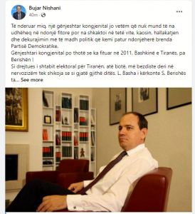 Ky nuk është thjesht qesharak, jo vetëm gënjeshtar kongjenital por një parazit politik me një kosto të madhe për të gjithë ne”, shkruan Nishani në një status në rrjetin social Facebook.