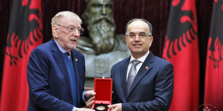 Presidenti Bajram Begaj i ka dhënë Ambasadorit William Walker në emër të shtetit shqiptar dhe në emër të të gjithë shqiptarëve një nga medaljet më të larta të Republikës së Shqipërisë, atë të “Kalorësit të Urdhrit të Flamurit”.