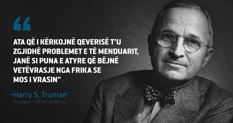 Rama ka zgjedhur të citojë Harry. S.Truman dhe i është drejtuar të gjithë atyre që i kërkojnë qeverisë t’u zgjidhë problemet e të menduarit. Sipas kryeministrit, këta njerëz janë si puna e tyre që bëjnë vetëvrasje nga frika se mos i vrasin.