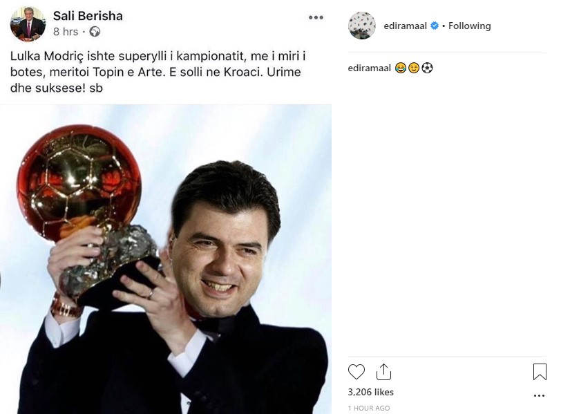 Sali Berisha ka postuar një foto të Luka Modric, duke e uruar për fitimin e Topit të Artë.