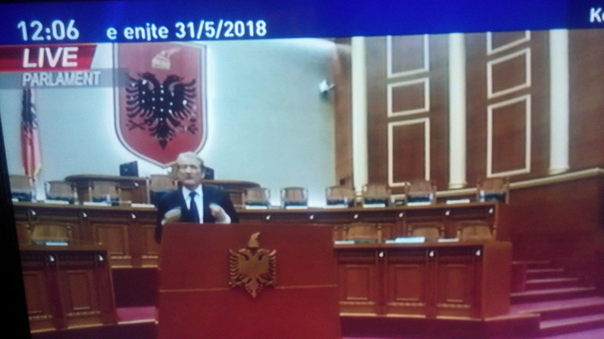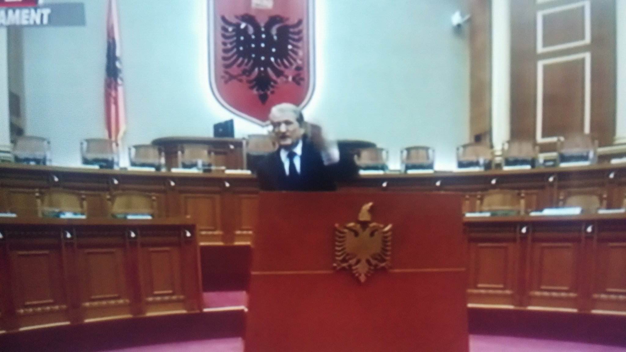 Ajo që ka rënë në sy është fakti se Berisha ka vijuar monologun e tij në sallën e Kuvendit nga foltorja në një sallë të zbrazur, pasi mazhoranca minuita më parë ishte larguar pasi kishte votuar p/ligjet në rendin e ditës.