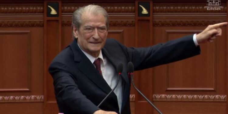Berisha: Mblidhemi pas farsës elektorale më të turpshme, pas rënies së perdes së hekur në Europën ish komuniste. Kjo seancë mblidhet pasi partia e krimit me në krye Edi Ramën, zhvilloi farsën zgjedhore. Kjo seancë mblidhet pasi në shkelje të të gjitha ligjeve kombëtare dhe ndërkombëtare, Rama përdori 76 mln euro dhuratë për votë për 48% të të votuesve. Pasi fali 200 mln gjoba dhe kamata për të marrë vota, pasi mobilizoi kartelet më të rrezikshme të drogës në Europë. Deputetët e këtyre karteleve iu zëvendësojnë ju në këtë Kuvend, jo se ju nuk ishit mëkatar, por vetëm njëri prej tyre, Arkendi, që mori 2500 vota në 2021, mori këtë vit nga Troplinët 5 mijë vota më shumë se Edi Rama. Për të blerë votat me drogë, kreu juaj firmosi mbledhje e 8 mijë hektarë kanabis në mbarë vendin. Ju mblidheni sot këtu në një kohë kur votën e parë të diasporës, të diasporës shqiptare e manipuluat në mënyrën më të egër kur 1.6 mln shqiptareve iu shkelmuat votën, por bota e krimit. S’mund të ishit ndryshe ju. Përfaqësues të klaneve më të egra të botës, nuk mund të ishit ndryshe. Këta mund të ishit. Më e ndershme që në kuvend të ulej Xhevdet Troplini, Altin Hajrim, Elvis Doçi, Suel Cela, Pëllumb Gjoka, Arben Qimja. U përdorin juve si lecka politike në funksion të perandorive të krimit.